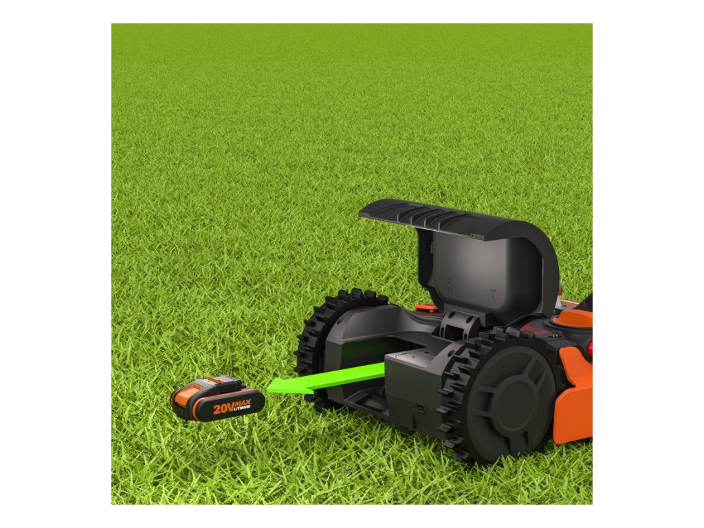 - Worx PowerShare. Sekačka Landroid může sdílet svou baterii se všemi bezdrátovými nástroji Worx 20V.