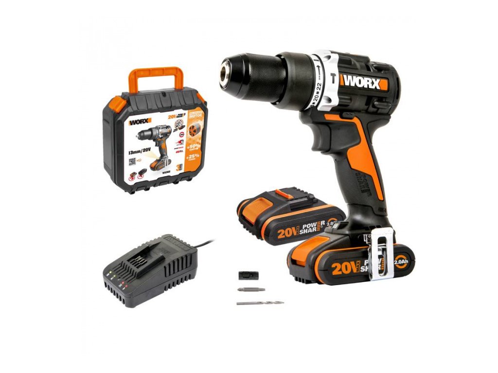 WX352 - Aku vrtačka 20V, 2x2.0Ah - Powershare je kompaktní akumulátorový příklepový vrtací šroubovák s optimalizovanou velikostí s bezuhlíkovým motorem, poskytuje dlouhotrvající výkon s vysokou rychlostí. Kompaktní design příklepového vrtacího šroubováku je určen pro náročné práce a zároveň poskytuje uživatelům vynikající manipulaci a ovládání. Díky bezuhlíkové technologii zvládne toto elektrické nářadí i ty nejnáročnější práce s lehkostí a zároveň poskytuje delší výdrž akumulátoru a odolnost. Aku vrtačka WX352 dosahující maximální rychlosti 2 000 ot./min. maximalizuje efektivitu na pracovišti, zejména při šroubování do dřeva nebo vrtání do dřeva, kovu a zdiva.