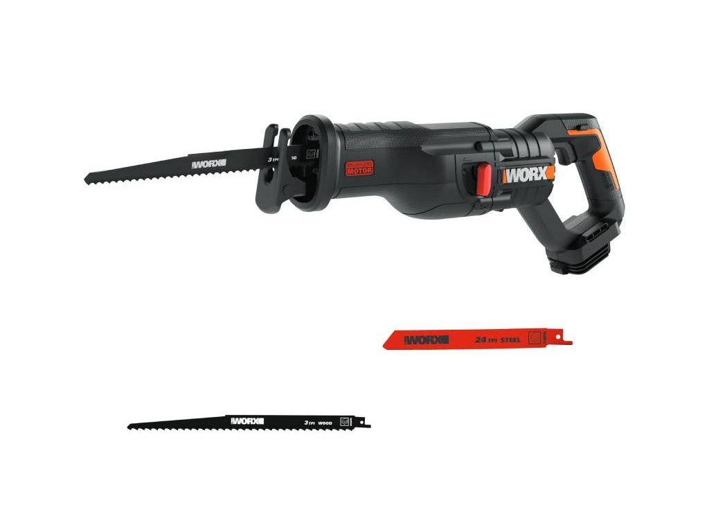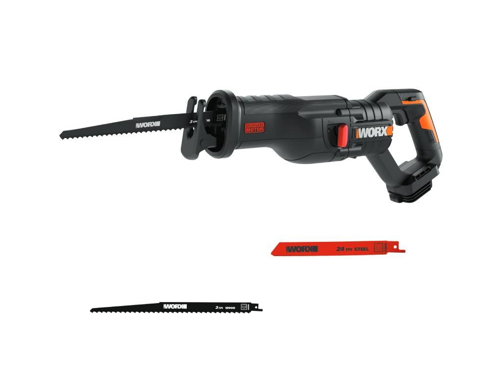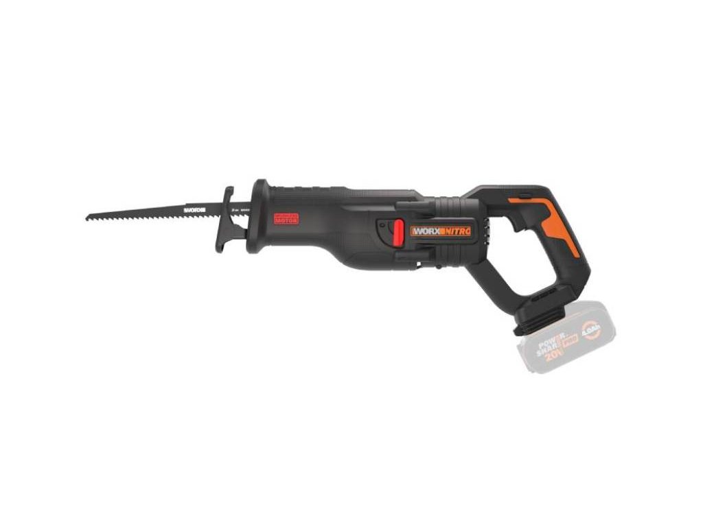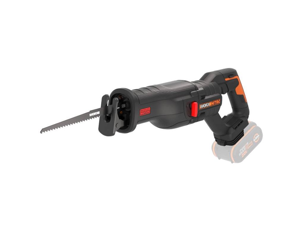 WX516.9 - Aku pila ocaska Díky technologii Worx NITRO Brushless nabízí akumulátorový řezný výkon, který předčí veškerá očekávání – srovnatelný s 700 W síťové pily ocasky. Pila se pyšní vynikajícím poměrem výkonu a hmotnosti, díky čemuž je práce s ním snazší a méně únavná, a to v jakékoli pracovní pozici. Funkce nacvaknutí bez nástrojů navíc zaručuje snadné nasazení a sejmutí pilového plátku ednou rukou. Pila e ideální na demoliční práce zahrnující řadu materiálů, jako je kov, dřevo, plast a izolační materiály. Je kompatibilní s celým 20V systémem WORX. Pila je dokonale stvořená pro řezání blízko u stěn ve svislé poloze. Ergonomický tvar se zaoblenou horní částí rukojeti umožňuje několik různých úchopů. Rychlost lze nastavit snadno a plynule pomocí spouště.