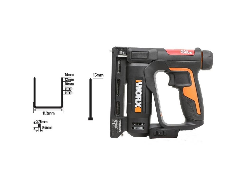 Aku sponkovačka Worx WX843.9 kdekoli, kde bude zapotřebí rychlé a pevné připevnění, prokáže své služby tato aku sponkovačka. Je vhodná nejen na připevňování dřeva, ale také na polstry a textilní látky. S bateriovým pohonem a hmotností rovných 1,4 kg ji lze ovládat skutečně komfortně. Použité hřebíky mají délku 15 mm a sponky 14 mm. Hloubku zaražení můžete nastavit bez použití dalšího nářadí.