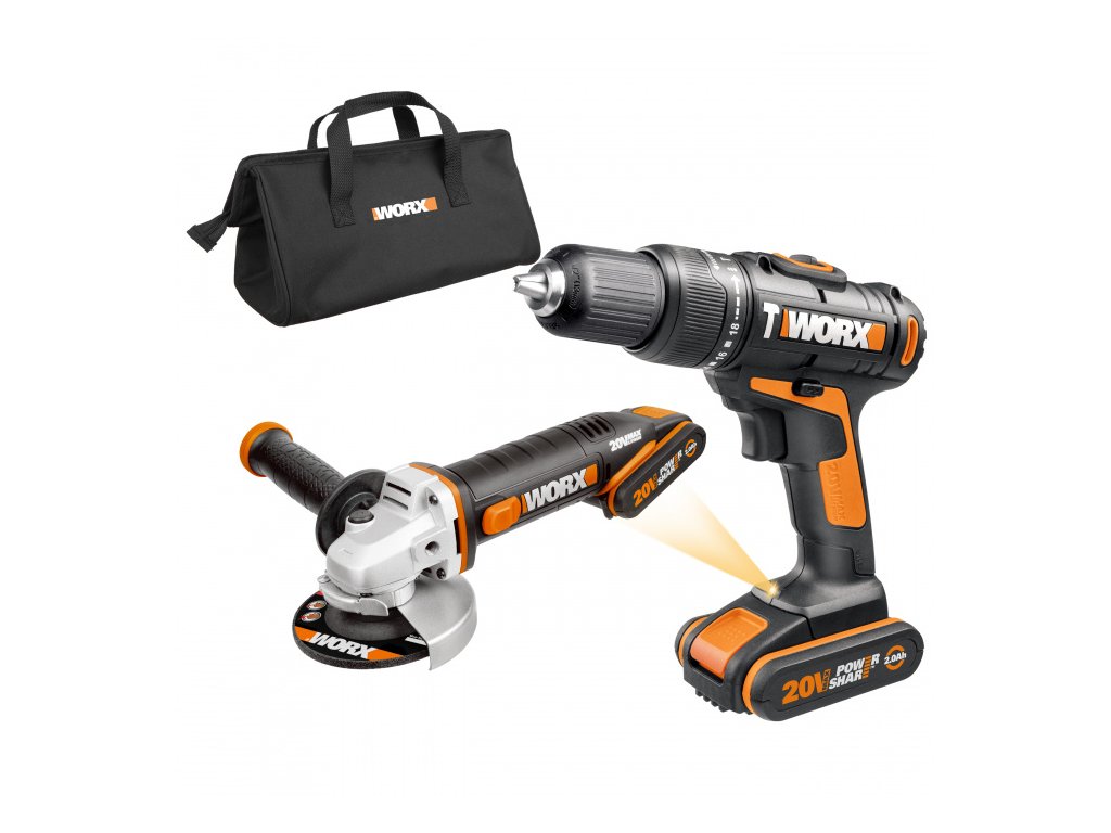 WX963 - Aku příklepová vrtačka a aku úhlová bruska 20V, 2x 2.0Ah + taška - PowerShare