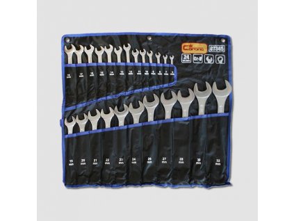 Sada očkoplochých klíčů v textilním obalu. Klíče jsou z jedné strany ploché otevřené,...
