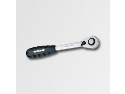 Ráčna s 36 zuby a přepínací páčkou. Pogumovaná, protiskluzová rukojeť. Chromový povrch...