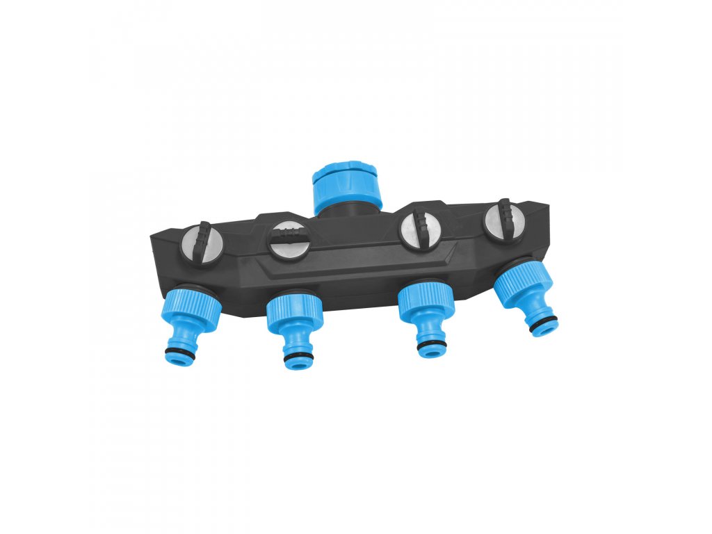 Zahradní rozdělovač čtyřcestný se čtyřmi ventily a plastový adaptér XT96026